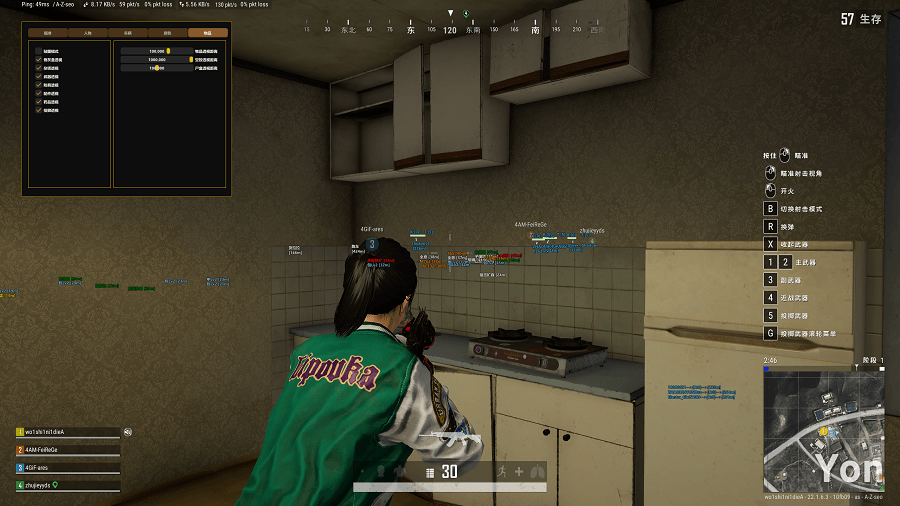 方框射线-骨骼距离-名字血量-人数背敌-雷达方框
