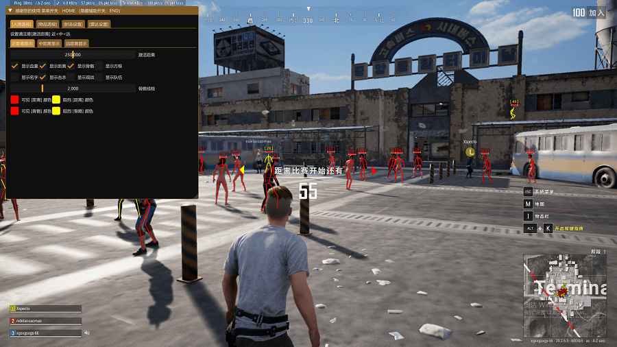 方框射线-骨骼距离-名字血量-人数背敌-雷达方框